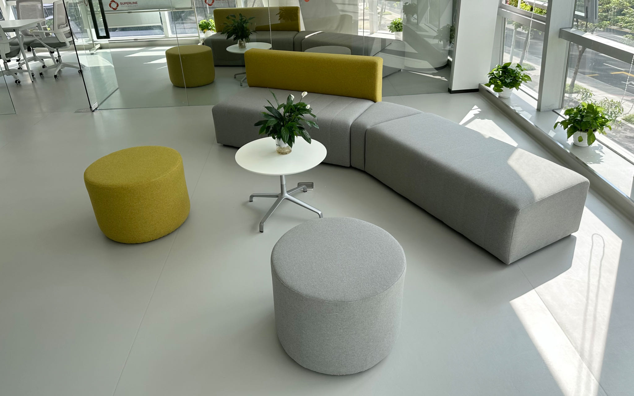 新辦公室設計融入了現代辦公元素,除了傳統的黑白灰三色,主色調融合了明黃色,代表了速航科技的活力與沖勁。
