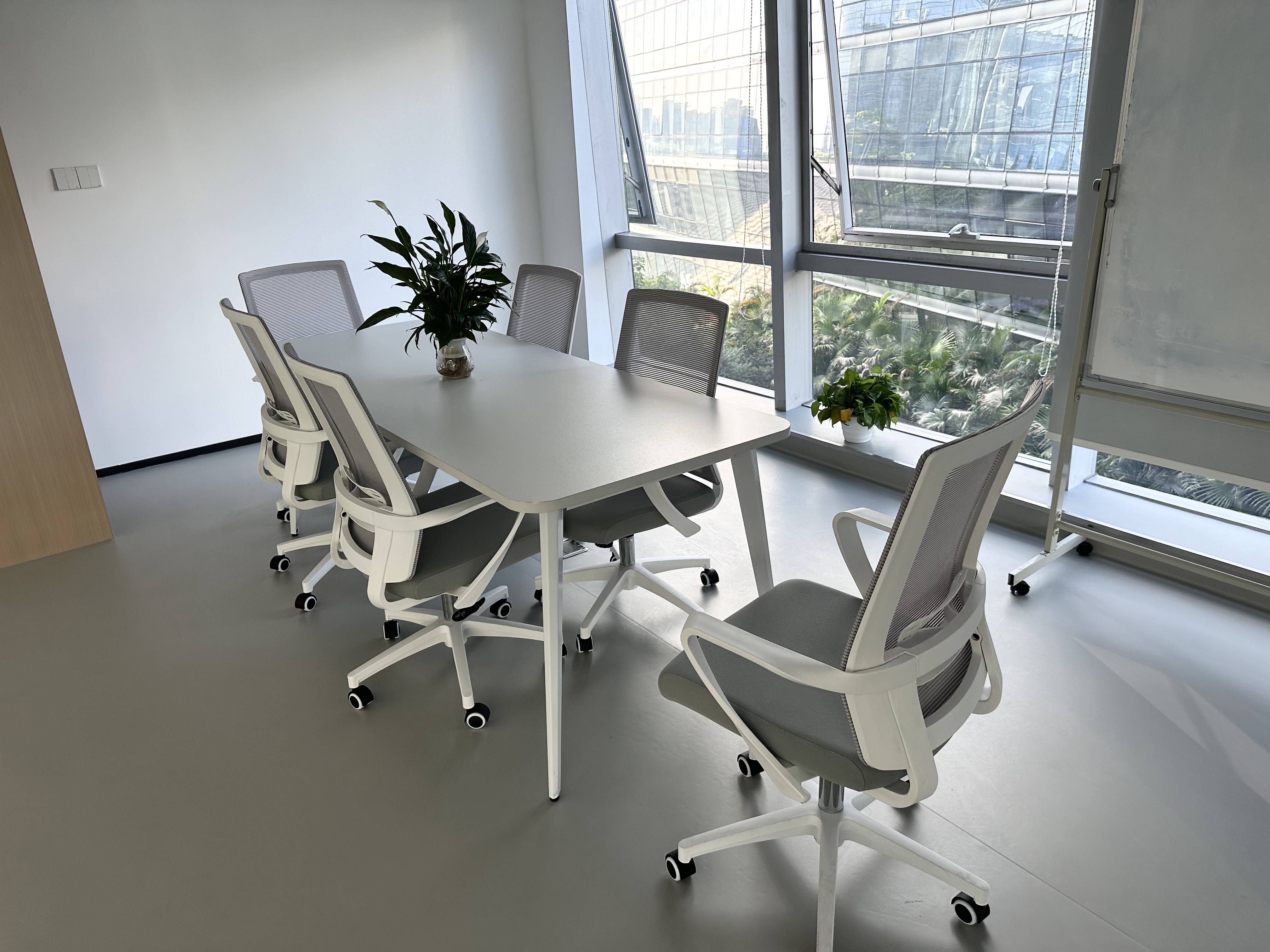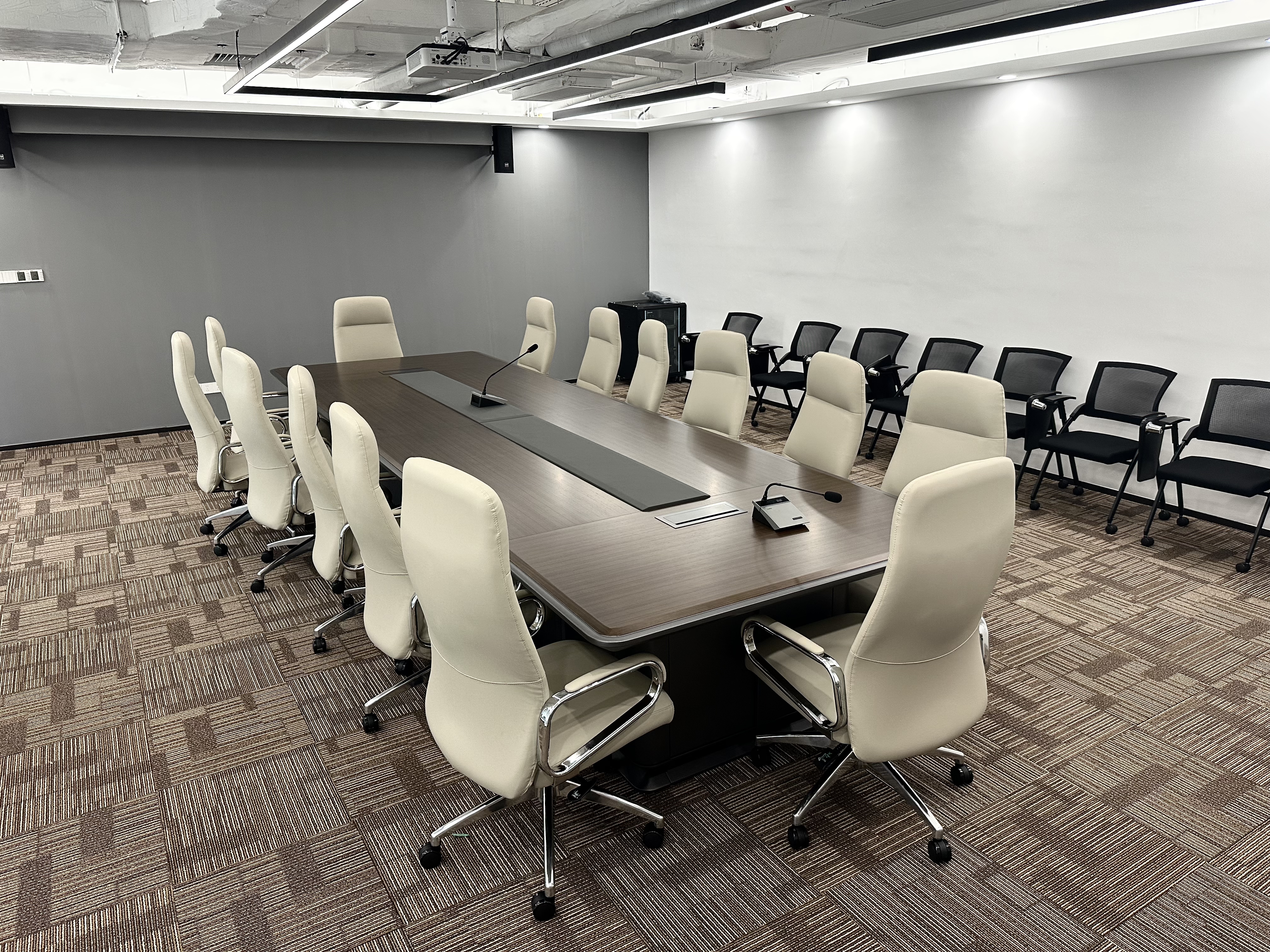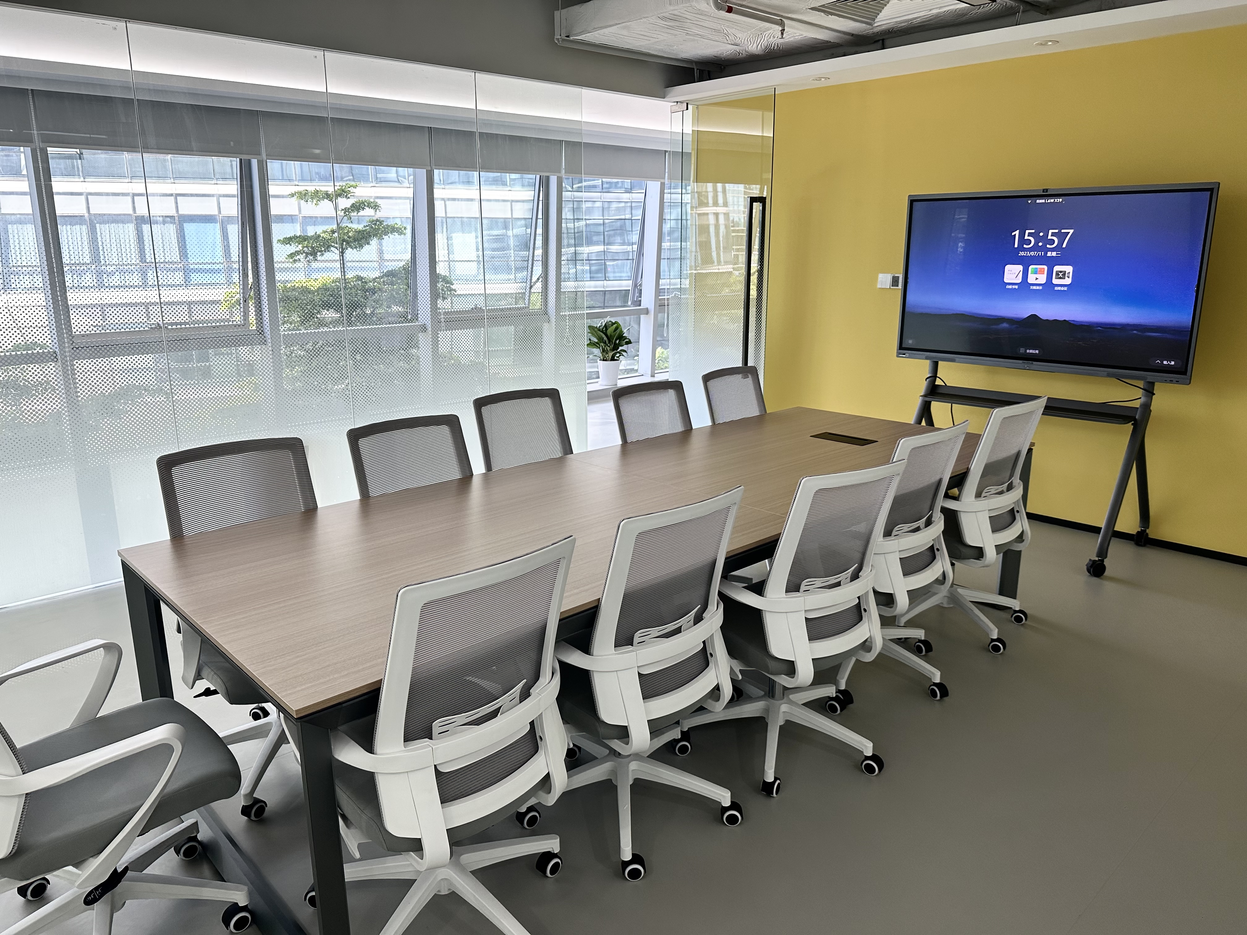 經過辦公區域,來到了我們的大會議室,簡約大氣的設計風格,搭配上適合久坐的辦公靠椅,真不錯。